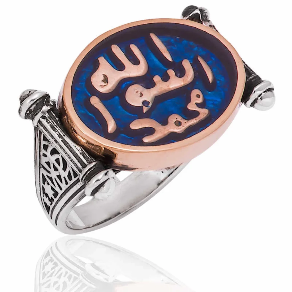 Allah Resulü Muhammed Yazılı Mühr-ü Şerif Gümüş Yüzük. Efendimizin (s.a.v.) mührü, Topkapı Sarayı"nda bulunmaktadır. Mühür olarak Türkçeleştirdiğimiz ifâdenin aslı "hâtem" dir. Hatem yüzük mânâsında da kullanılır. Nitekim Resulullah"ın mührü aynı zamanda yüzük şeklindeydi. "Hâtemu"n-Nebî" veya "Hatemü Resûlillah" diye tabir edilen bu yüzük gümüşten yapılmıştı ve kaşlı idi. (Buhari ) Enes b. Malik (ra) anlatıyor, Peygamberimizin Mührü gümüşten yapılmıştı. Kaşı ise Habeş taşındandı. Efendimiz yabancı devlet reislerine mektup yazmak isteyince, bir mühür yüzük yapılmasını buyurdu. Peygamber Efendimizin parmağındaki yüzüğün parıltısı hala gözümün önünde duruyor. Peygamber Efendimizin Mühr-ü Şeriflerinin taşına, üç satır halinde, Muhammed Resulullah" ibaresi kazınmıştı. Birinci satırda “Muhammed”, ikinci satırda “Resul”, üçüncü satırda da “Allah” kelimeleri yer almaktadır. 925 ayar gümüşten imal edilmiştir. Gümüş üzerine oksit kaplama yapılmıştır. Oksit kaplama yapılan erkek yüzükleri parlaklığını uzun süre muhafaza eder, oksitlenmesi gecikir. Ürünlerimizin tamamı el emeği ile üretilmiştir. Gümüş ve değerli taşlar nedeniyle belirtilen ortalama ürün ağırlığında ± %10 sapma olabilmektedir.