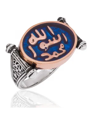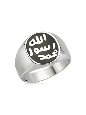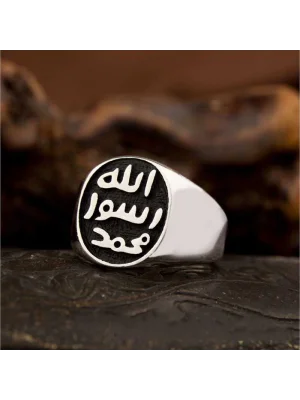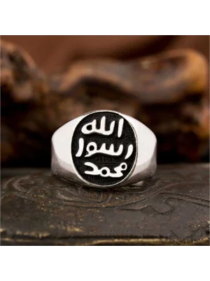 Allah Resulü Muhammed Yazılı Mühr-ü Şerif Gümüş Yüzük. Efendimizin (s.a.v.) mührü, Topkapı Sarayı"nda bulunmaktadır. Mühür olarak Türkçeleştirdiğimiz ifâdenin aslı "hâtem" dir. Hatem yüzük mânâsında da kullanılır. Nitekim Resulullah"ın mührü aynı zamanda yüzük şeklindeydi. "Hâtemu"n-Nebî" veya "Hatemü Resûlillah" diye tabir edilen bu yüzük gümüşten yapılmıştı ve kaşlı idi. (Buhari ) Enes b. Malik (ra) anlatıyor, Peygamberimizin Mührü gümüşten yapılmıştı. Kaşı ise Habeş taşındandı. Efendimiz yabancı devlet reislerine mektup yazmak isteyince, bir mühür yüzük yapılmasını buyurdu. Peygamber Efendimizin parmağındaki yüzüğün parıltısı hala gözümün önünde duruyor. Peygamber Efendimizin Mühr-ü Şeriflerinin taşına, üç satır halinde, Muhammed Resulullah" ibaresi kazınmıştı. Birinci satırda “Muhammed”, ikinci satırda “Resul”, üçüncü satırda da “Allah” kelimeleri yer almaktadır. 925 ayar gümüşten imal edilmiştir. Gümüş üzerine oksit kaplama yapılmıştır. Oksit kaplama yapılan erkek yüzükleri parlaklığını uzun süre muhafaza eder, oksitlenmesi gecikir. Ürünlerimizin tamamı el emeği ile üretilmiştir. Gümüş ve değerli taşlar nedeniyle belirtilen ortalama ürün ağırlığında ± %10 sapma olabilmektedir.