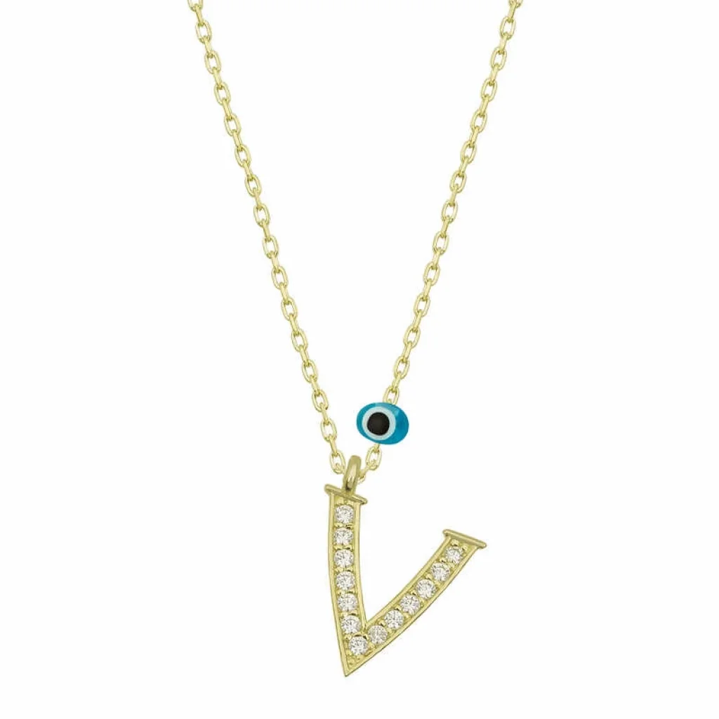 Gümüş Nazar Gold V Harfi Kadın Kolye
