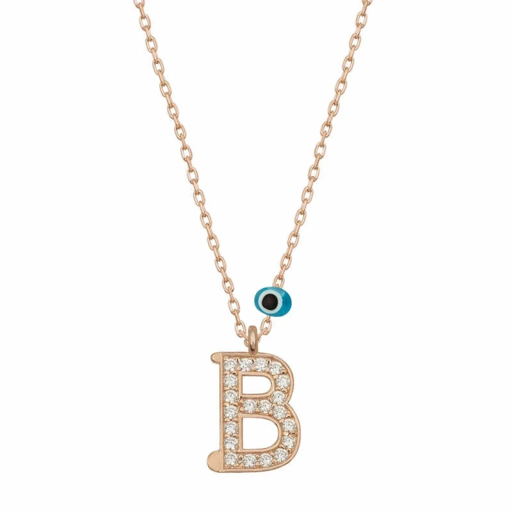 Gümüş Nazar Rose B Harfi Kadın Kolye