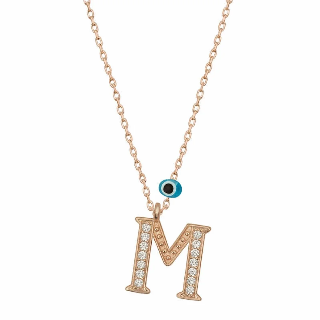 Gümüş Nazar Rose M Harfi Kadın Kolye