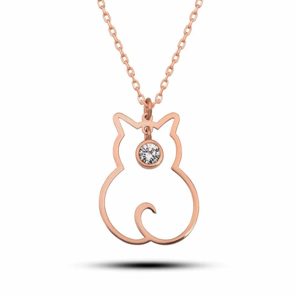 Her bir doğum taşı, belli bir ayla özdeşleşmiştir. Elmas nisan ayı doğum taşıdır. Taş birlik, güven, sadakat ve özveriyi sembolize eder. Elmas nişan ve düğün yüzükleri için geleneksel bir taş olarak kabul edilir. İnanç, aşk, masumiyet, güzellik, berraklık ve saflığın temsilinin kadınlarıın en iyi arkadaşı olduğu söylenir.Evlerimizin sevimli neşe kaynağı kediler, temiz olmalarının yanı sıra masumiyetin simgesidir. Asil ve mantıklı bir kişiliğe, mükemmel sezgilere ve akılcı bir duyarlılığa sahiptirler. Özel günlerin en tercih edilen hediye seçeneklerinden olan gümüş takılar, sevdiklerini mutlu etmek ve onlara her an yanlarında taşıyabilecekleri bir hediye vermek isteyenler için tasarlandı. Masumiyetin simgesi olan kedi figürlü gümüş kolye modelini kız kardeşinize, sevgilinize ya da arkadaşlarınıza armağan edebilirsiniz. Elmas taşlı kedi kadın kolye modeli 925 ayar gümüşten imal edilmiştir. Gümüş üzerine rose kaplama yapılmıştır. Rose kaplama yapılan gümüş kedi kolye modelleri parlaklığını uzun süre muhafaza eder ve oksitlenmesi gecikir. Kolye üzerinde bulunan tüm taş elmastır. Gümüş olan zincir boyu ortalama 45 cm"dir. Gümüş kadın kedi kolye diğer tüm gümüş kadın kolye modellerinde olduğu gibi el emeği ile üretilmiştir. Gümüş ve değerli taşlar nedeniyle belirtilen ortalama ürün ağırlığında ± %10 sapma olabilmektedir.