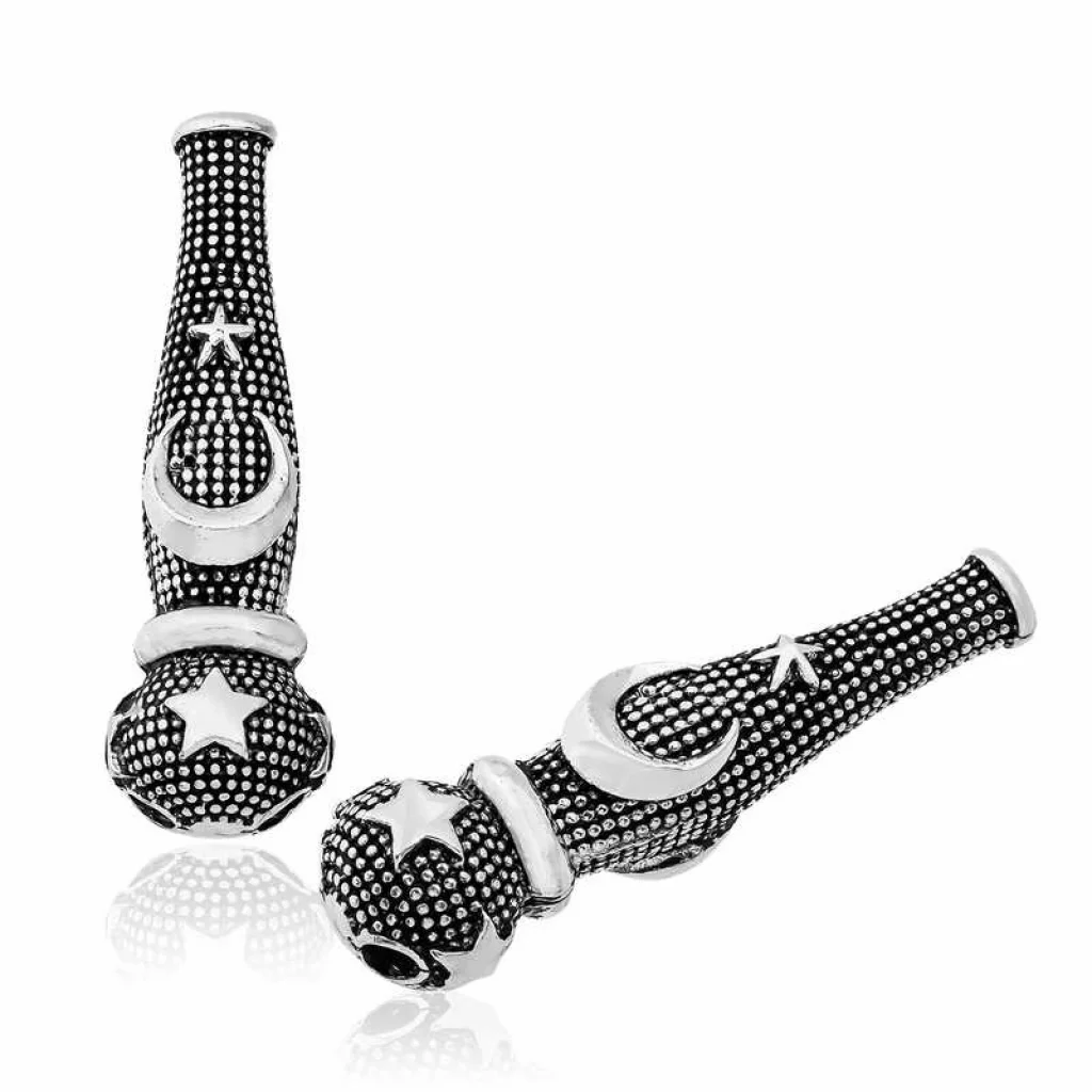 Gümüş Nokta İşlemeli Ayyıldız Motifli Tesbih İmamesi