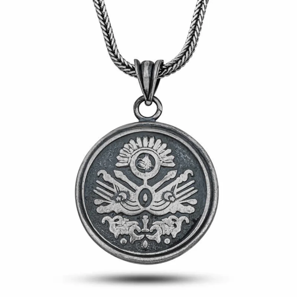 Osmanlı Devleti"nin arması ve motifleri, tarih boyunca egemenlik, koruma ve güç sembolü olmuştur. Bu kolye, Osmanlı"nın ihtişamını ve kültürel mirasını yansıtarak taşıyana şans ve koruma getirdiğine inanılır. Ayrıca, Osmanlı motifleri ve sembolleri, sadakat, güç ve geçerliliğin simgeleri olarak görülür.Genel olarak,bu kolye hem tarihsel bir anlatım taşır hem de taşıyana manevi güç ve koruma sağlayacağına inanılır.Osmanlı tarihi ve kültürüne ilgisi olanlar için anlamlı ve değerli bir takıdır. Gümüş üzerine oksit kaplama yapılmıştır. Oksit kaplama yapılan gümüş kolyeler parlaklığını uzun süre muhafaza eder, oksitlenmesi gecikir. Ürünlerimizin tamamı el emeği ile üretilmiştir. Gümüş ve değerli taşlar nedeniyle belirtilen ortalama ürün ağırlığında ± %10 sapma olabilmektedir.