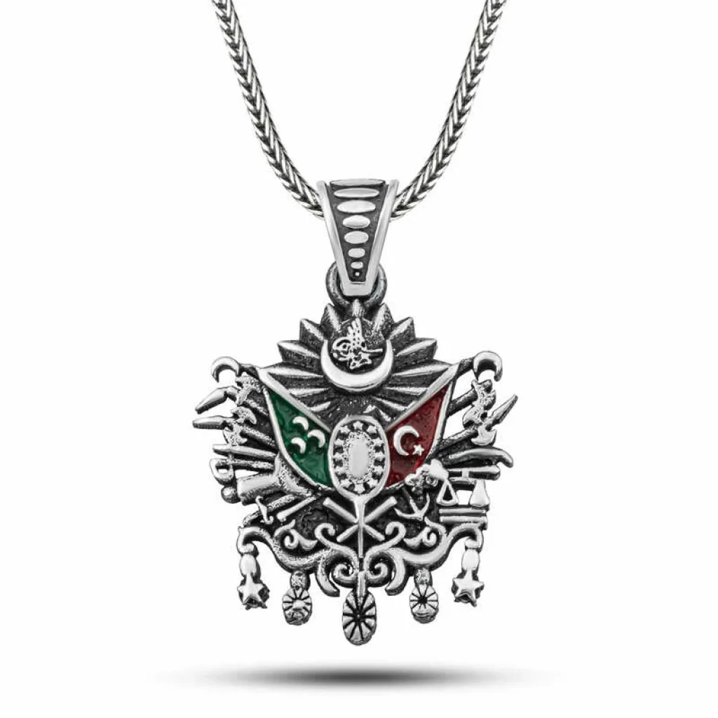 Tarihin ihtişamını stilinize taşıyın!Osmanlı İmparatorluğu"nun görkemli mirasını modern tasarım ile buluşturan bu özel kolye,güçlü duruşunuzu ve zarif zevkinizi yansıtmak için tasarlandıOsmanlı Devlet Arması,ihtişamı ve gücü temsil eder.Bu kolye,tarih tutkunları ve özgün tarzını ortaya koymak isteyen erkekler için ideal bir aksesuardır.Gümüş üzerine oksit kaplama yapılmıştır.Oksit kaplama yapılan gümüş kolyeler parlaklığını uzun süre muhafaza eder,oksitlenmesi gecikir.Ürünlerimizin tamamı el emeği ile üretilmiştir. Gümüş ve değerli taşlar nedeniyle belirtilen ortalama ürün ağırlığında ± %10 sapma olabilmektedir.
