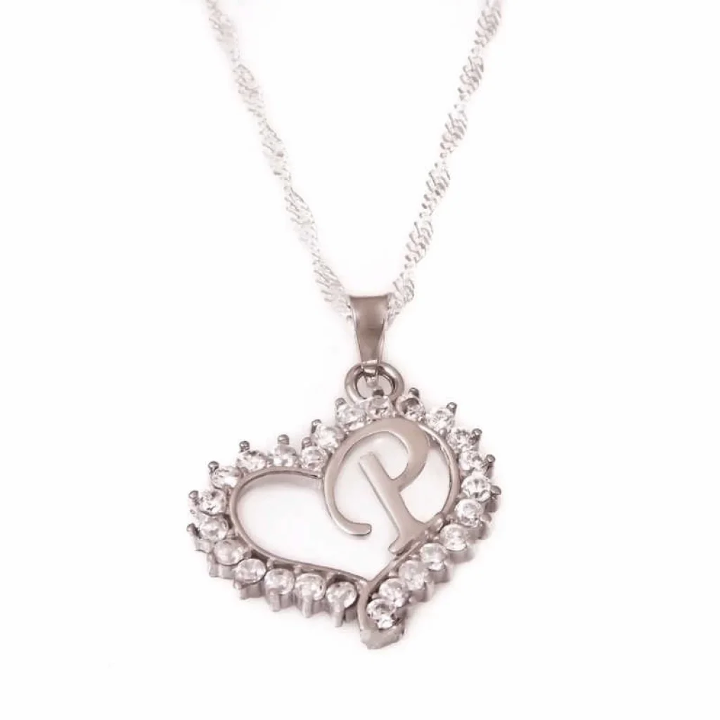Gümüş P Harf Kalpli Bayan Kolye