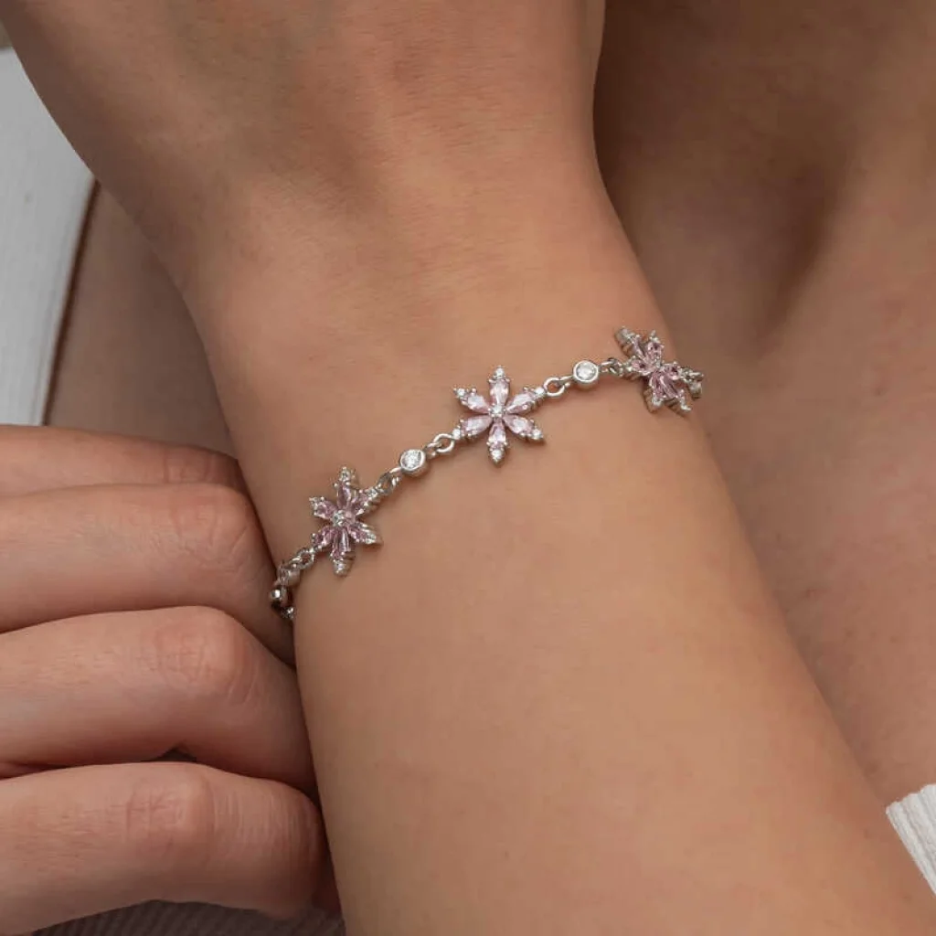 Pembe lotus çiçeği kadın bilekliği, zarif tasarımıyla öne çıkan şık bir aksesuardır. Pembe rengi ise genellikle sevgi, şefkat ve yatıştırıcı bir enerji ile ilişkilendirilir.Pembe lotus çiçeği kadın bilekliği, sevdiklerinize hediye edebileceğiniz anlamlı bir seçenek olmasının yanı sıra, kendinize de bu güzel tasarımı armağan edebilirsiniz. Hem estetik hem de manevi değer taşıyan bu bileklik, rahat bir şıklık arayan kadınların vazgeçilmezi olabilir.Gümüş üzerine rodyum kaplama yapılmıştır. Rodyum kaplama yapılan lpembe lotus çiçeği kadın bileklik modelleri parlaklığını uzun süre muhafaza eder. Gümüş ve değerli taşlar nedeniyle belirtilen ortalama ürün ağırlığında ± %10 sapma olabilmektedir.
