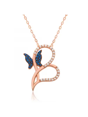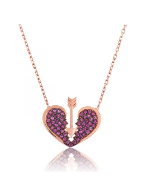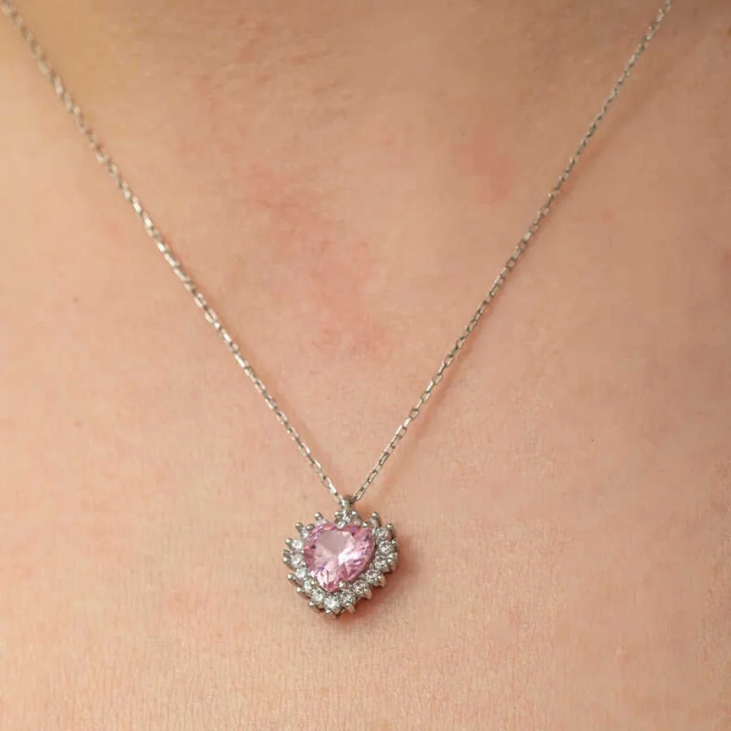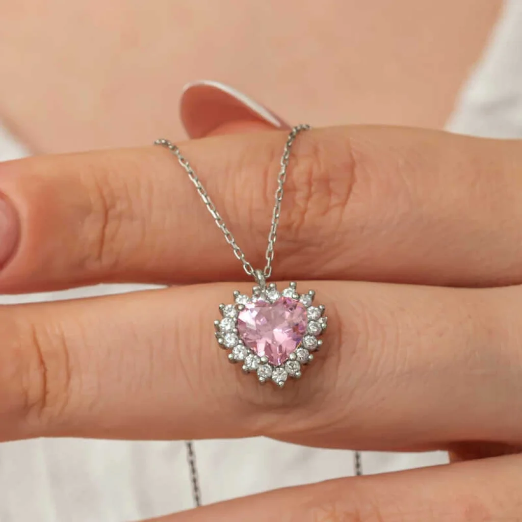 Gümüş Pembe Taşlı Kalp Kadın Kolye