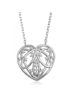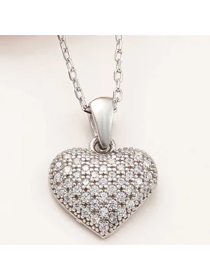Kalp simgesi daima koşulsuz sevginin ve aşkın sembolü olmuştur. Dini öğretilerde ise kalbin gücü sınırsızdır. Çünkü kalp Yaradanın evi, bizim ise evrene açılan gerçeklik kapımızdır. Bu şık gümüş kalp kolye; doğum günü hediyesi, sevgililer günü hediyesi veya annelere hediye olarak özel günlerde tercih edilebilecek mükemmel bir seçenektir. Gümüş kalp kadın kolye 925 ayar gümüşten imal edilmiştir. Bu kolye üzerinde rodyum kaplama yapılmıştır. Rodyum kaplama yapılan gümüş kadın kolye modelleri parlaklığını uzun süre muhafaza eder. Üzerinde bulunan taşlar zirkondur. Tüm gümüş kadın kolye modellerimizde olduğu gibi gümüş kalp kadın kolye modeli de el emeği ile üretilmiştir. Gümüş ve değerli taşlar nedeniyle belirtilen ortalama ürün ağırlığında ± %10 sapma olabilmektedir.