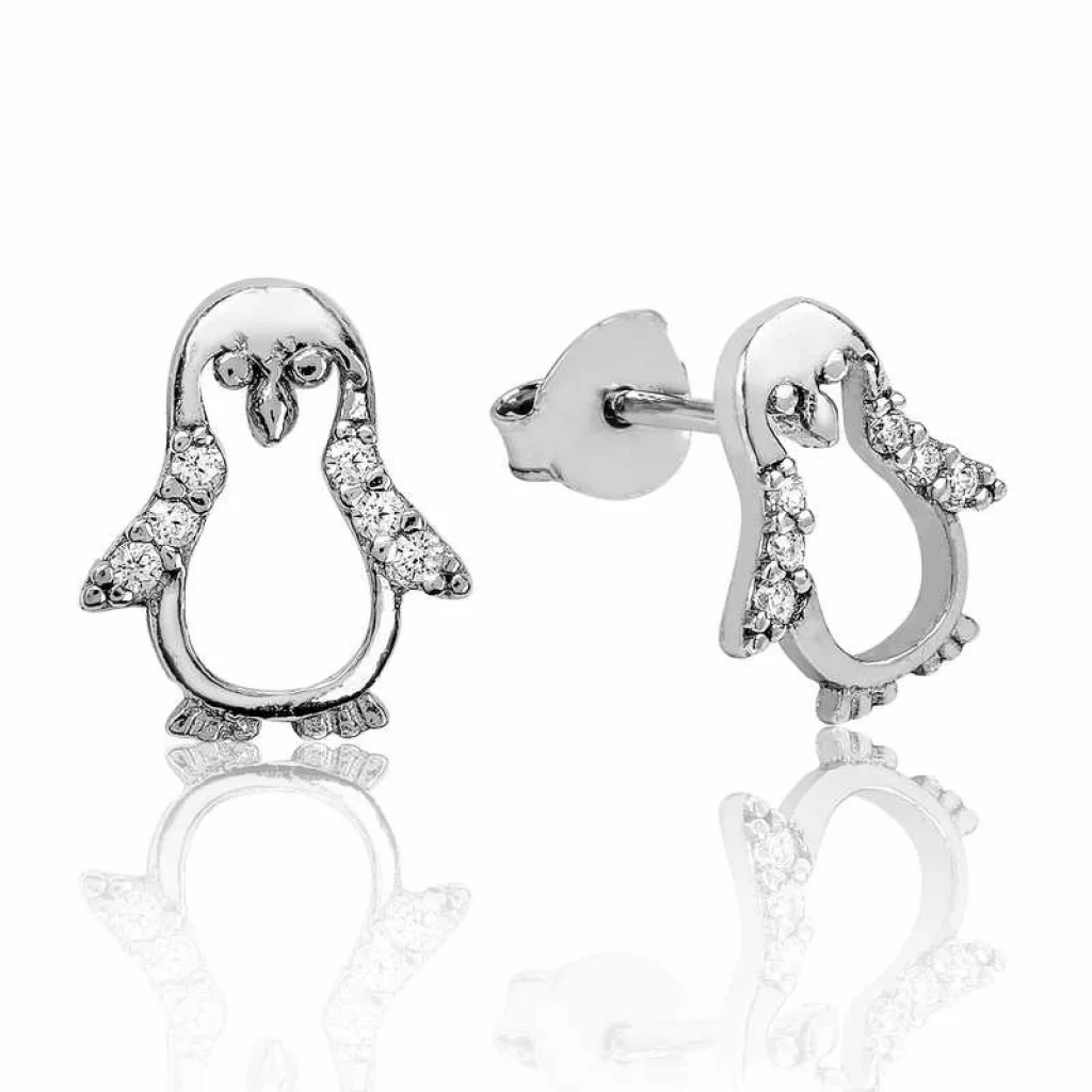 Gümüş Penguen Çivili Küpe