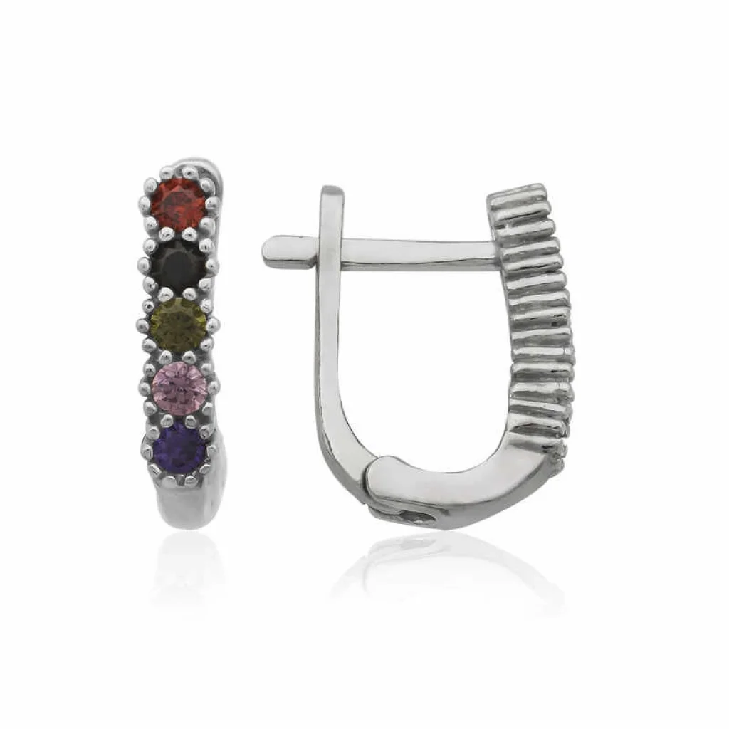Küçük yaşlarda süse merak salan prenseslere birbirinden süslü ve şık küpe modellerini sunuyoruz. Gümüş çocuk küpe modellerimiz ile sitemizde yeni doğan, doğum günü ve özel günlerde çocuklar için takıya dair ne ararsanız bulabileceğiniz bir çok hediye fikirleri ve seçenekleri mevcut. Çocuk takıları nedense genellikle annelerin ve yakın akrabaların ilgisini çeker. Gümüş çocuk ve bebek küpeleri kategorisinde minik prenseslere ait ürünleri bulabilir ve kolaylıkla satın alabilirsiniz. Bu şık küpe modeli 925 ayar gümüşten imal edilmiştir. Gümüş üzerine rodyum kaplama yapılmıştır. Rodyum kaplama yapılan gümüş küpe modelleri parlaklığını uzun süre muhafaza eder. Küpe üzerindeki renkli taşlar zirkondur. Ürünlerimizin tamamında olduğu gibi gümüş renkli küpe modeli de el emeği ile üretilmiştir. Gümüş ve değerli taşlar nedeniyle belirtilen ortalama ürün ağırlığında ± %10 sapma olabilmektedir.