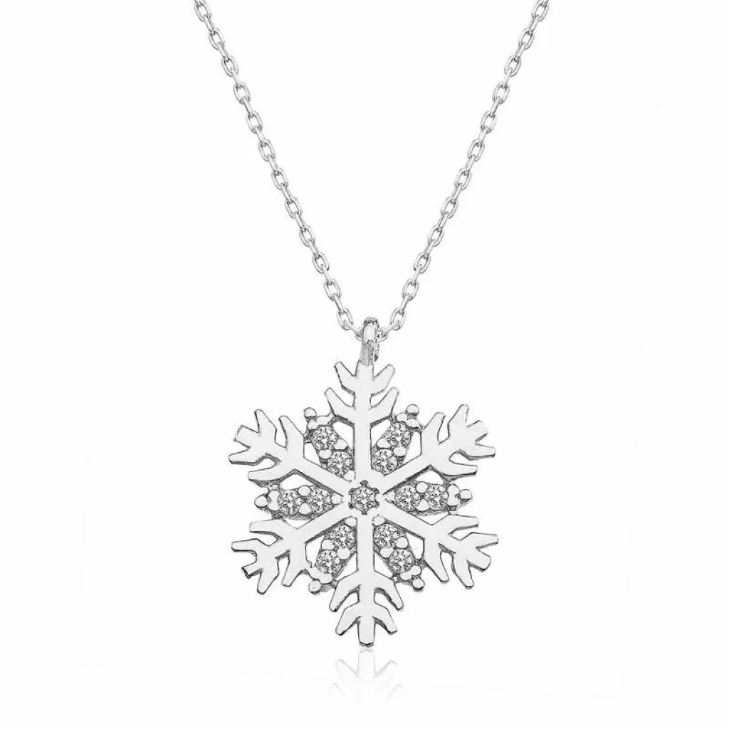 Gümüş Rodyum Kar Tanesi Bayan Kolye