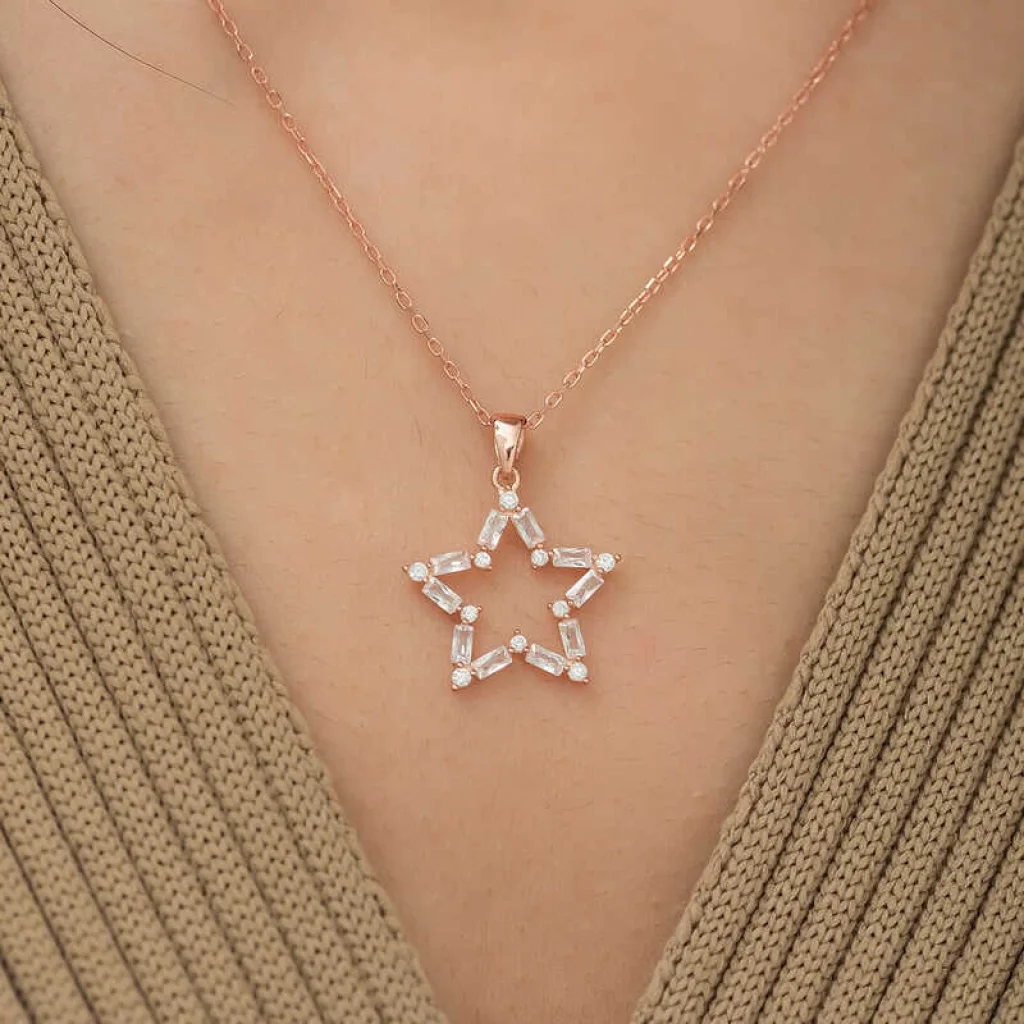 Gümüş Rose Baget Taşlı Yıldız Kolye