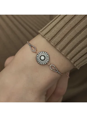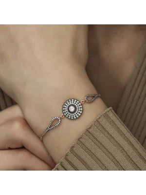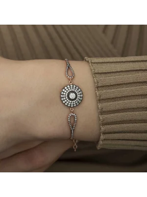 Gümüş Rose Çiçek Desenli Elmas Montür Bileklik