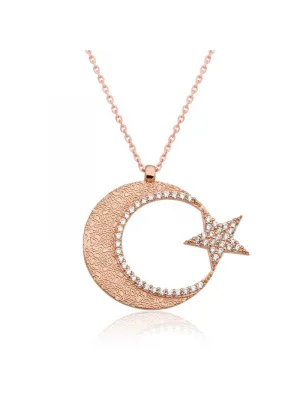 Gümüş Rose Damla Çerçeveli Ay Yıldız Bayan Kolye