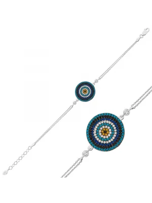 Nazar boncuğunu insanlar uzun yıllardan beri kötü bakıştan korunmak için kullanmışlardır. Kötü bakışların insanlar üzerinde olumsuz etki oluşturmasına karşı bir önlemdir nazar boncuğu… Bu sebeptendir ki insanlar sevdiklerini korumak için nazar boncuğu takmaktadır. Bu nazar bileklik de şıklığı ve zarafeti yansıtıyor. Her dönem sevilen ve şıklığından ödün vermeyen bu modeli; doğum günü hediyesi, sevgililer günü hediyesi veya annelere hediye olarak özel günlerde tercih edebilirsiniz. Damla nazar bayan bileklik, 925 ayar gümüşten imal edilmiştir. Gümüş üzerine rose altın kaplama yapılmıştır. Rose altın kaplama yapılan bayan bileklikler parlaklığını uzun süre muhafaza eder, gümüş rengini pembe renge dönüştürür ve oksitlenmeyi geciktirir. Bileklik üzerinde bulunan taşlar zirkondur. Tüm gümüş bayan bileklik modellerinde olduğu gibi bu gümüş damla nazar bayan bileklik de tamamı el emeği ile üretilmiştir. Gümüş ve değerli taşlar nedeniyle belirtilen ortalama ürün ağırlığında ± %10 sapma olabilmektedir.
