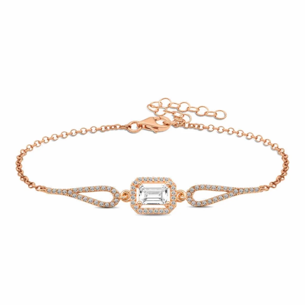 Gümüş Rose Dikdörtgen Baget Bileklik