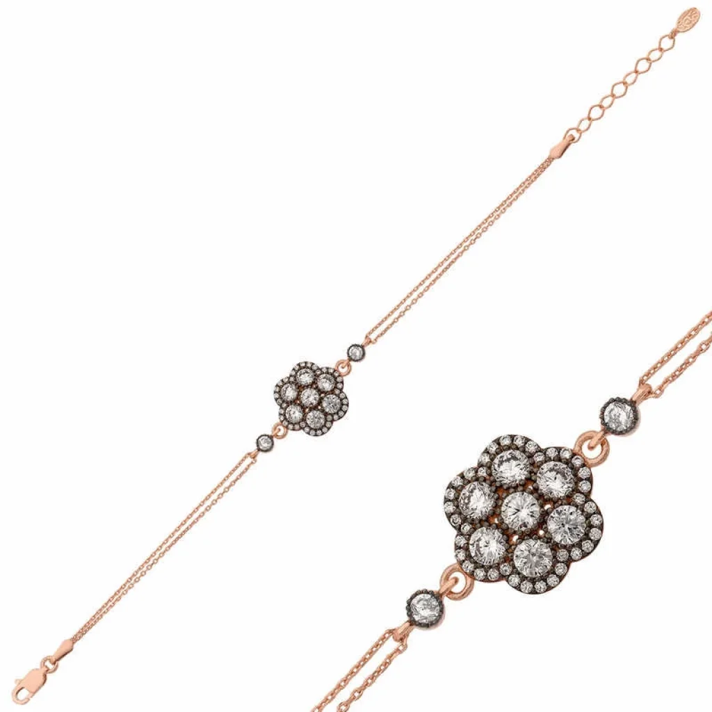 Gümüş Rose Elmas Montür Çiçek Bileklik
