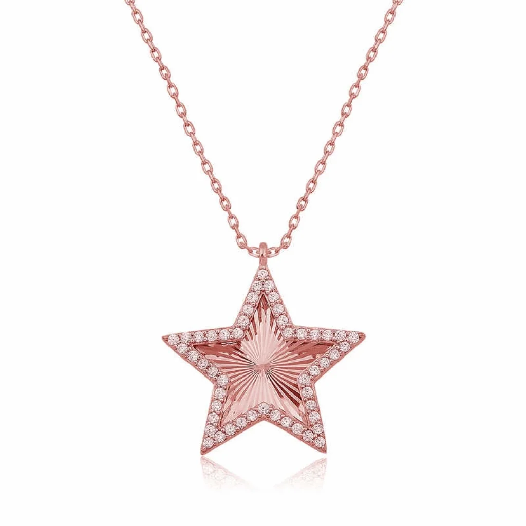 Gümüş Rose Fırfır Desenli Yıldız Kadın Kolye