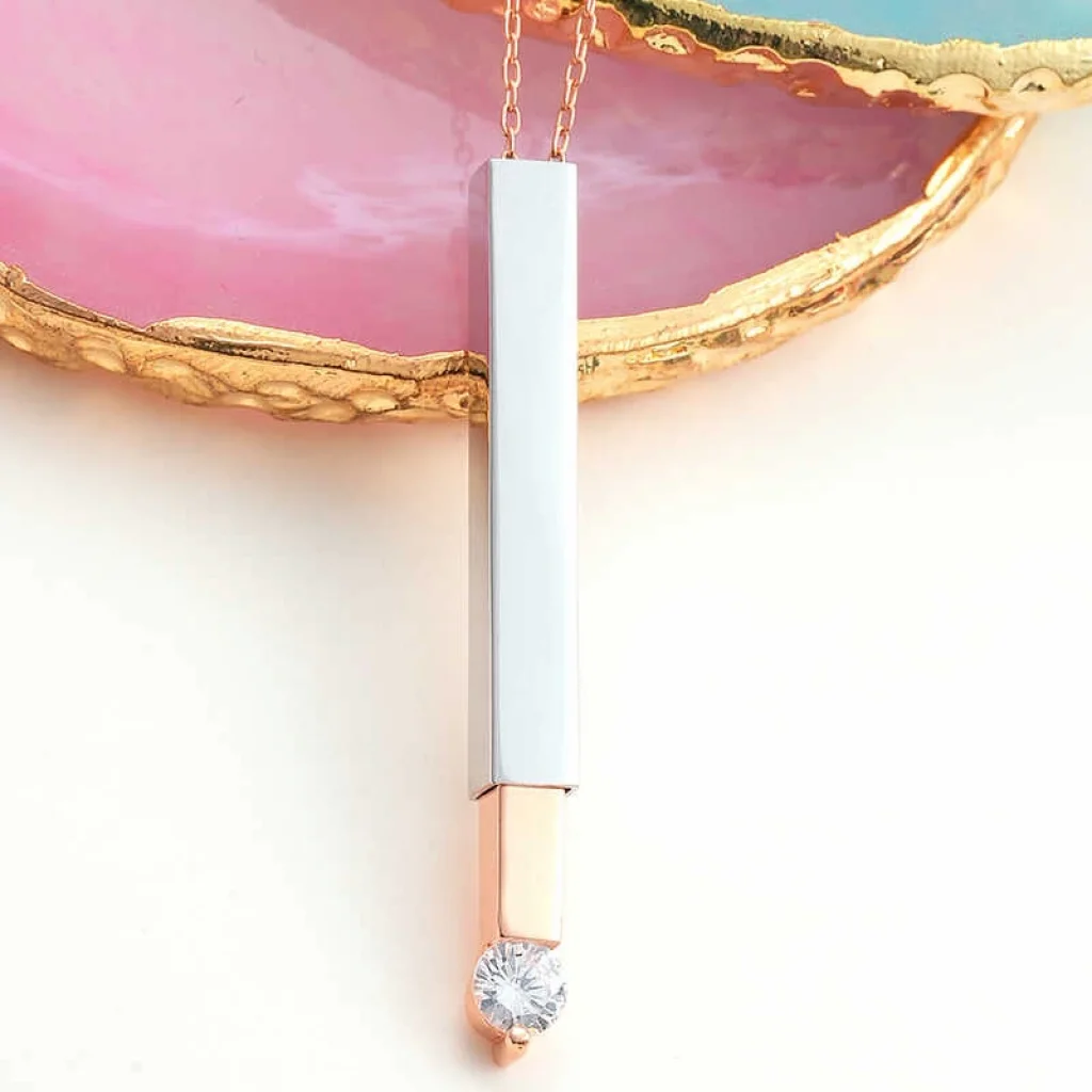 Gümüş Rose İsim Yazılabilen Açılır Çubuk Kadın Kolye