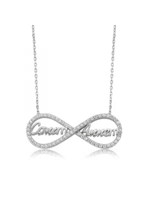 Gümüş Rose Kanatlı Sonsuz Kalp Kolye