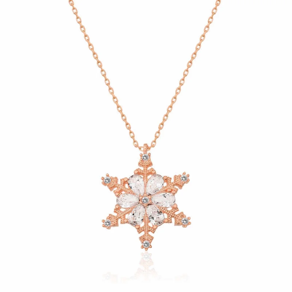 Gümüş Rose Kar Çiçeği Bayan Kolye