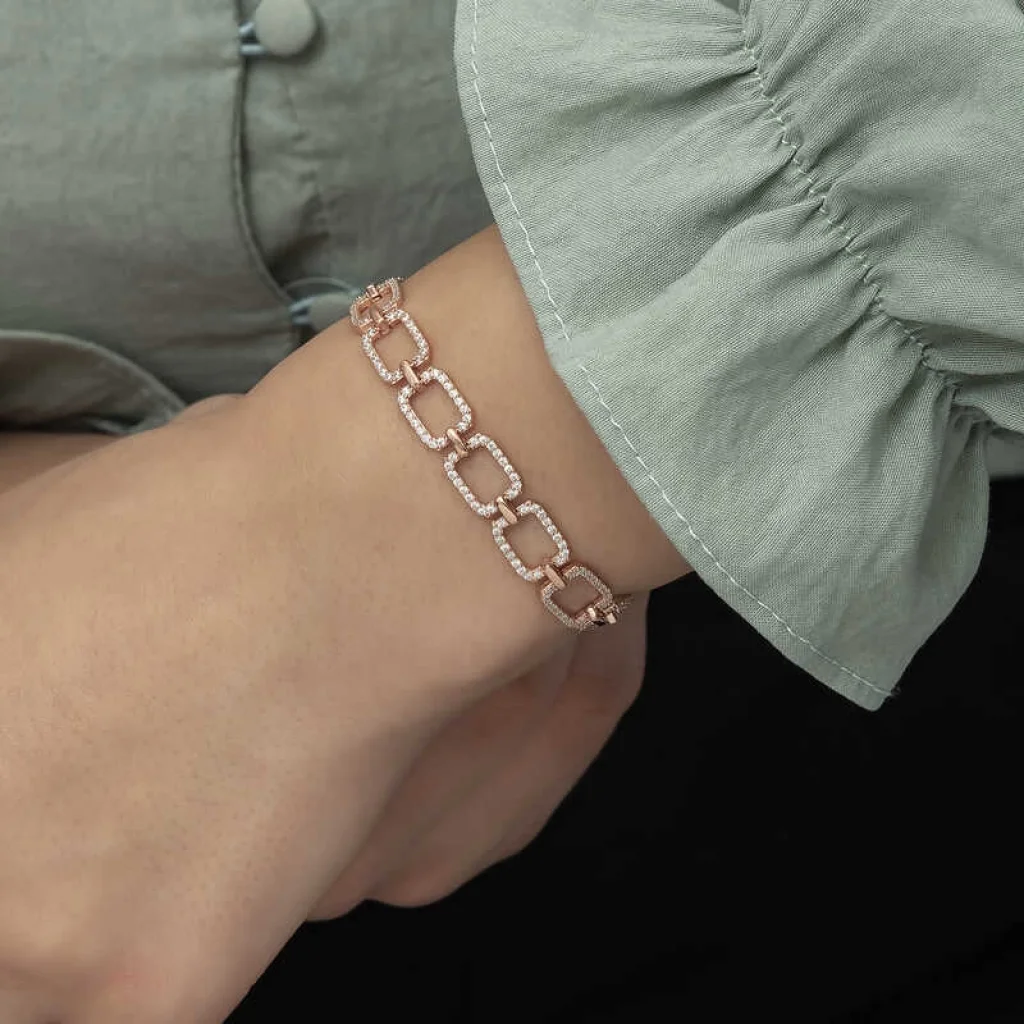 Gümüş Rose Kare Taşlı Bayan Bileklik