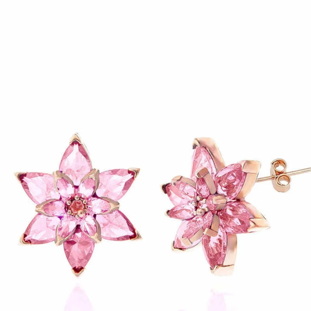 Gümüş Rose Pembe Lotus Çiçeği Çivili Kadın Küpe
