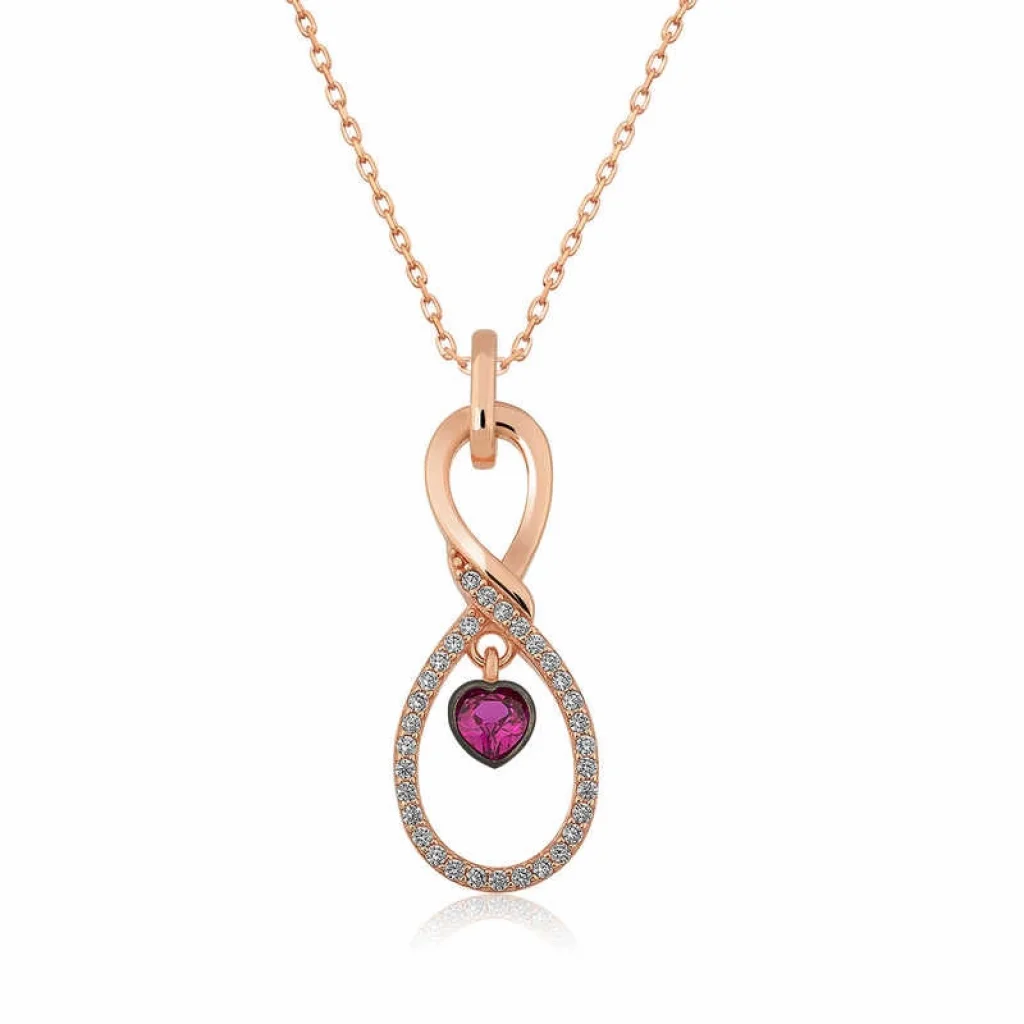 Sevgilinize sonsuz aşkı ifade etmenin en güzel ve en anlamlı yollarından biri sonsuzluk kolyesidir. Sonsuzluk sembolüne iliştirilmiş sallantılı kalp kolye, sonsuz aşkın gözle görülür halidir. Bu şık kolye ile sevdiğinize olan sonsuz aşkınızı ifade edebilir, sonsuza kadar birlikte olacağınız mesajı verebilirsiniz. Gümüş sonsuz kalp bayan kolye modelini; doğum günü hediyesi, sevgililer günü hediyesi veya annelere hediye olarak özel günlerde tercih edebilirsiniz. Gümüş sonsuz kalp bayan kolye, 925 ayar gümüşten imal edilmiştir. Gümüş üzerine rose kaplama yapılmıştır. Rose kaplama yapılan gümüş bayan kolyeler parlaklığını uzun süre muhafaza eder, oksitlenmesi gecikir. Üzerinde bulunan taşlar zirkondur. Zincir boyu ortalama 45 cm"dir. Tüm gümüş bayan kolyelerde olduğu gibi bu gümüş sonsuz kalp bayan kolye de tamamı el emeği ile üretilmiştir. Gümüş ve değerli taşlar nedeniyle belirtilen ortalama ürün ağırlığında ± %10 sapma olabilmektedir.