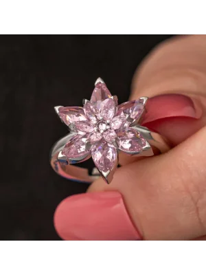 Alışılmışın dışındaki tasarımı ve şıklığıyla dikkat çeken aksesuarlardan biri olan baget ve zirkon taşlarla süslenmiş rüzgar gülü yüzük 360° derece dönebilen özelliğiyle sizleri etkisi altına alacak. Doğadan ilham alınarak tasarlanmış bu şık yüzük sevdiklerinize armağan edebileceğiniz alışılmışın dışında bir aksesuardır. Rüzgar gülü çiçek yüzük 925 ayar gümüşten imal edilmiştir. Gümüş üzerine rodyum kaplama yapılmıştır. Yüzük parmak kalınlığına göre ayarlanabilir yapıdadır. Diğer yüzüklerde olduğu gibi gümüş ayarlanabilir rüzgar gülü yüzük de el emeği ile üretilmiştir. Gümüş ve değerli taşlar nedeniyle belirtilen ortalama ürün ağırlığında ± %10 sapma olabilmektedir.