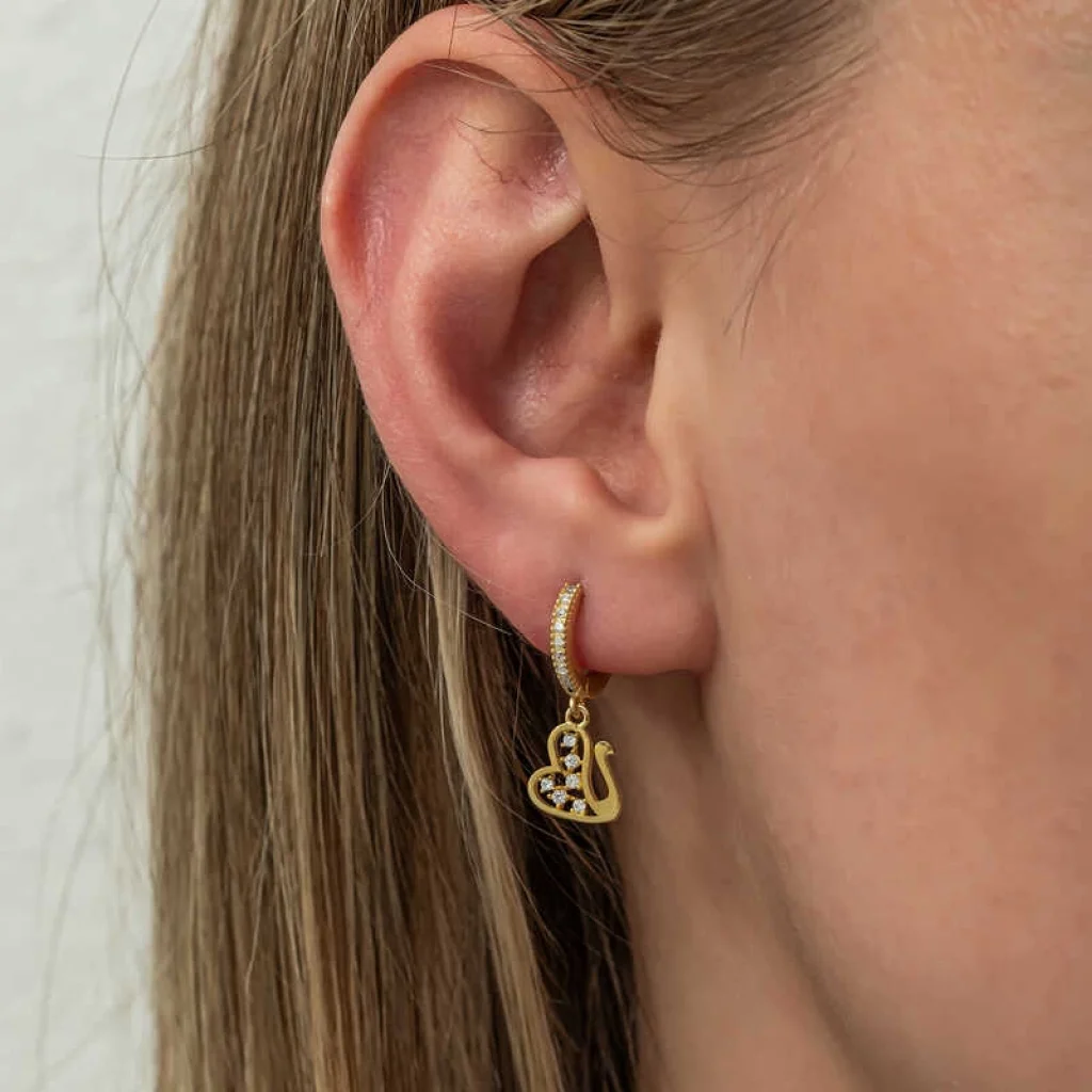 Gümüş Sallantılı Gold Kuğu Kadın Küpe
