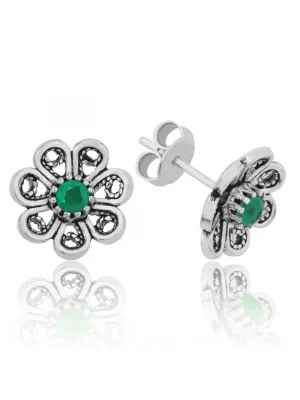 Gümüş Sarı Taşlı Damla Çivili Kadın Küpe