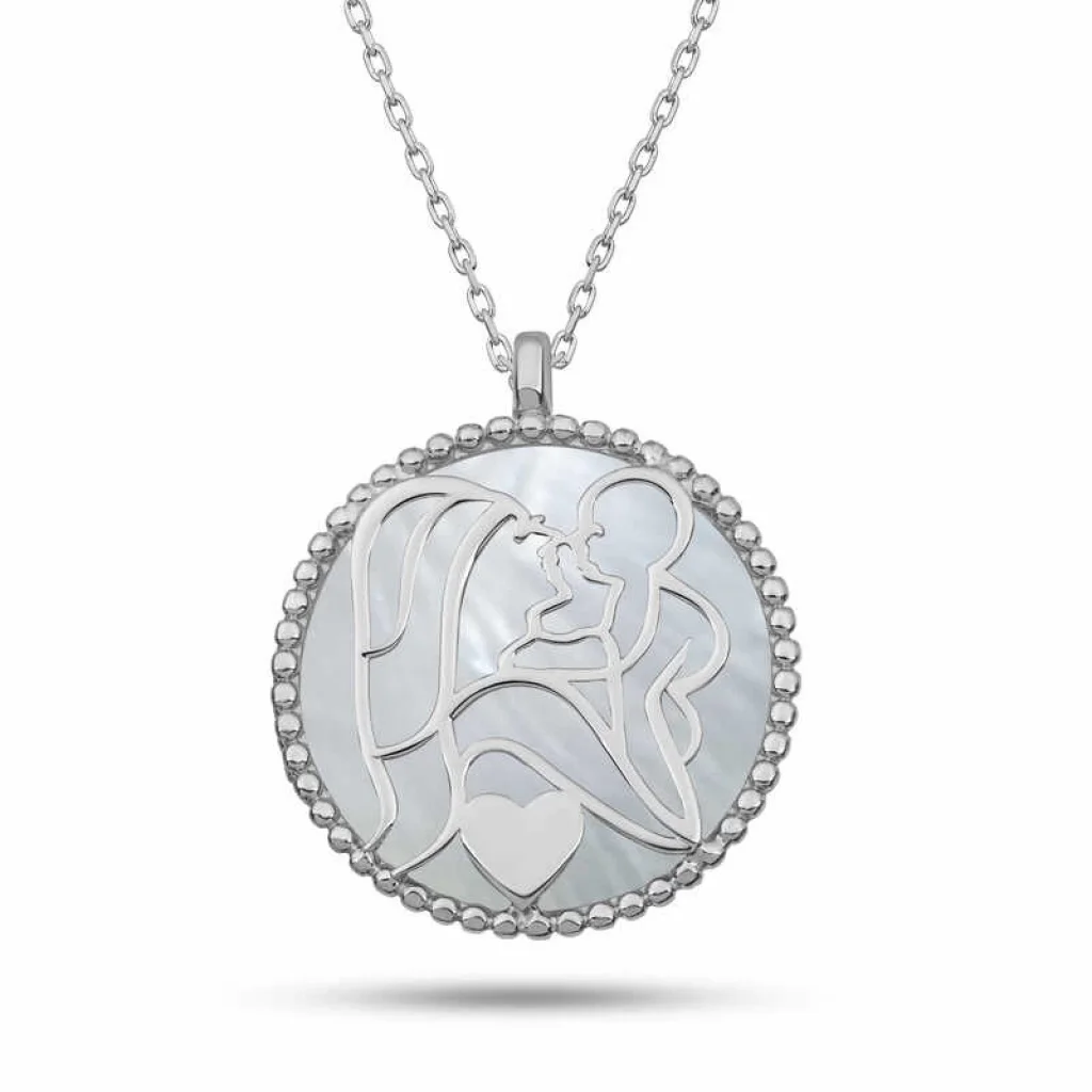 Gümüş Sedef Taşlı Anne Çocuk Sevgisi Kolye