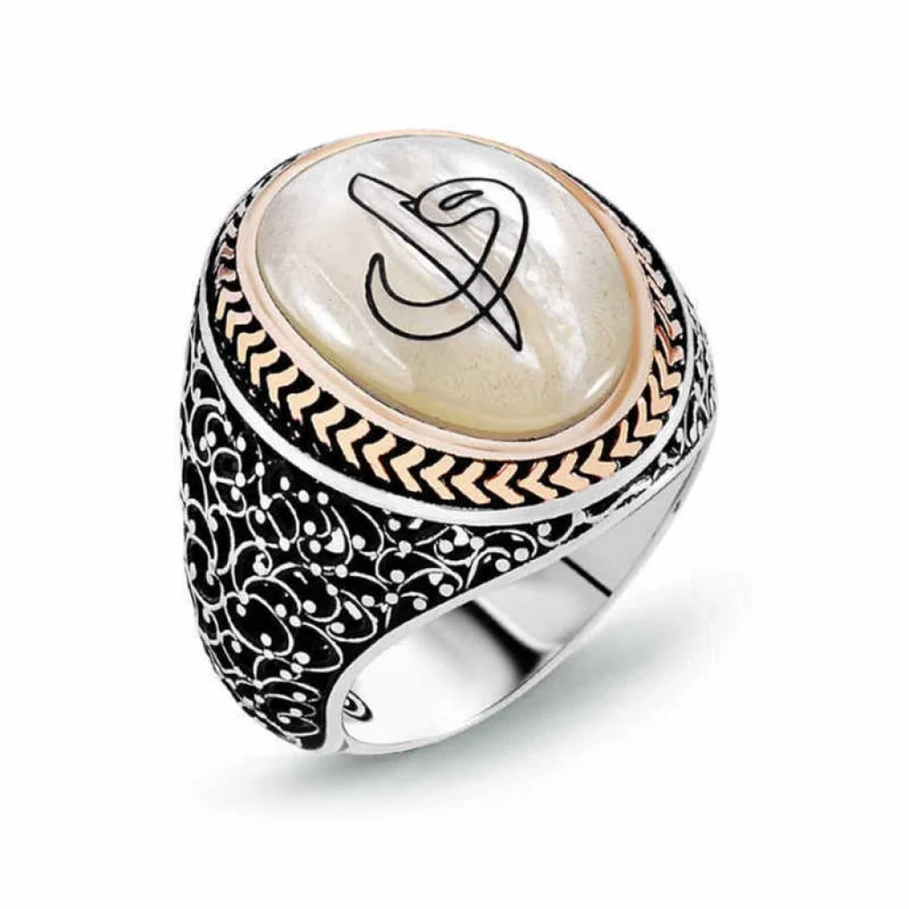 Gümüş Sedef Taşlı Elif Vav Erkek Yüzük