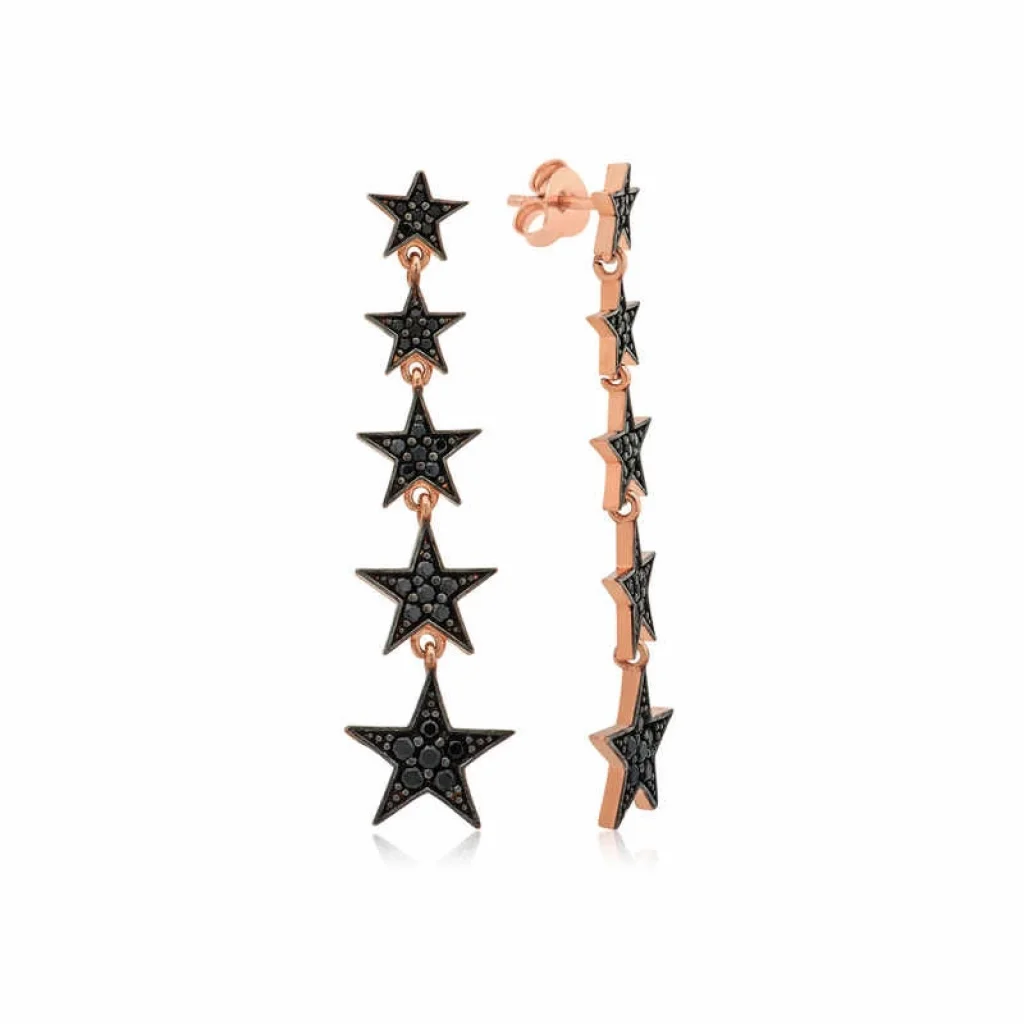 Gümüş Siyah Kayan Yıldızlar Küpe