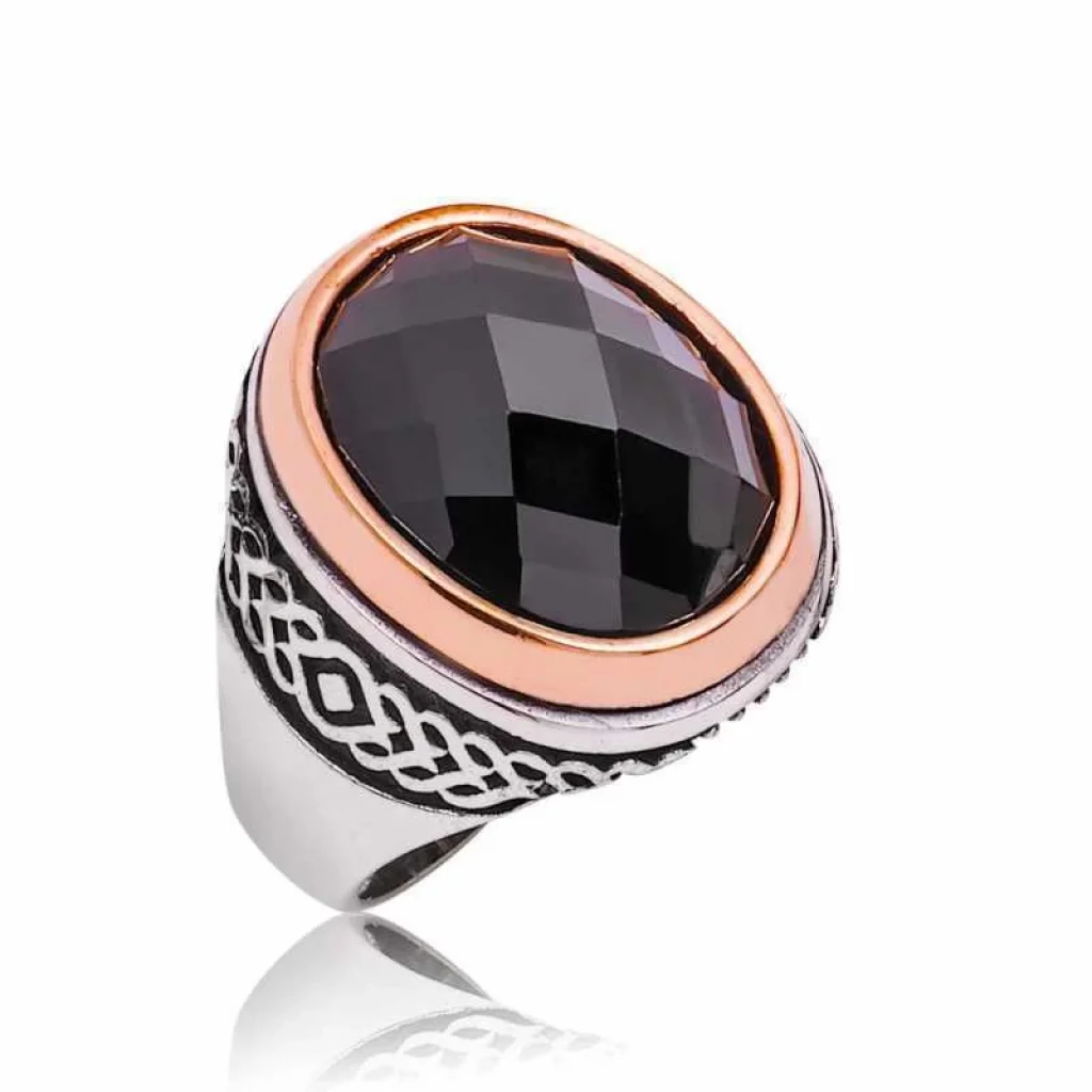Gümüş Siyah Kesme Taşlı Erkek Yüzük