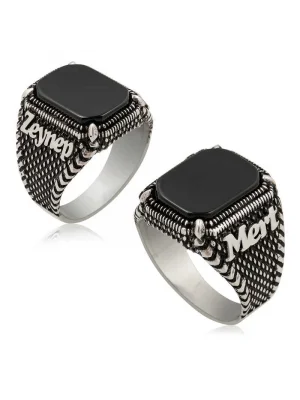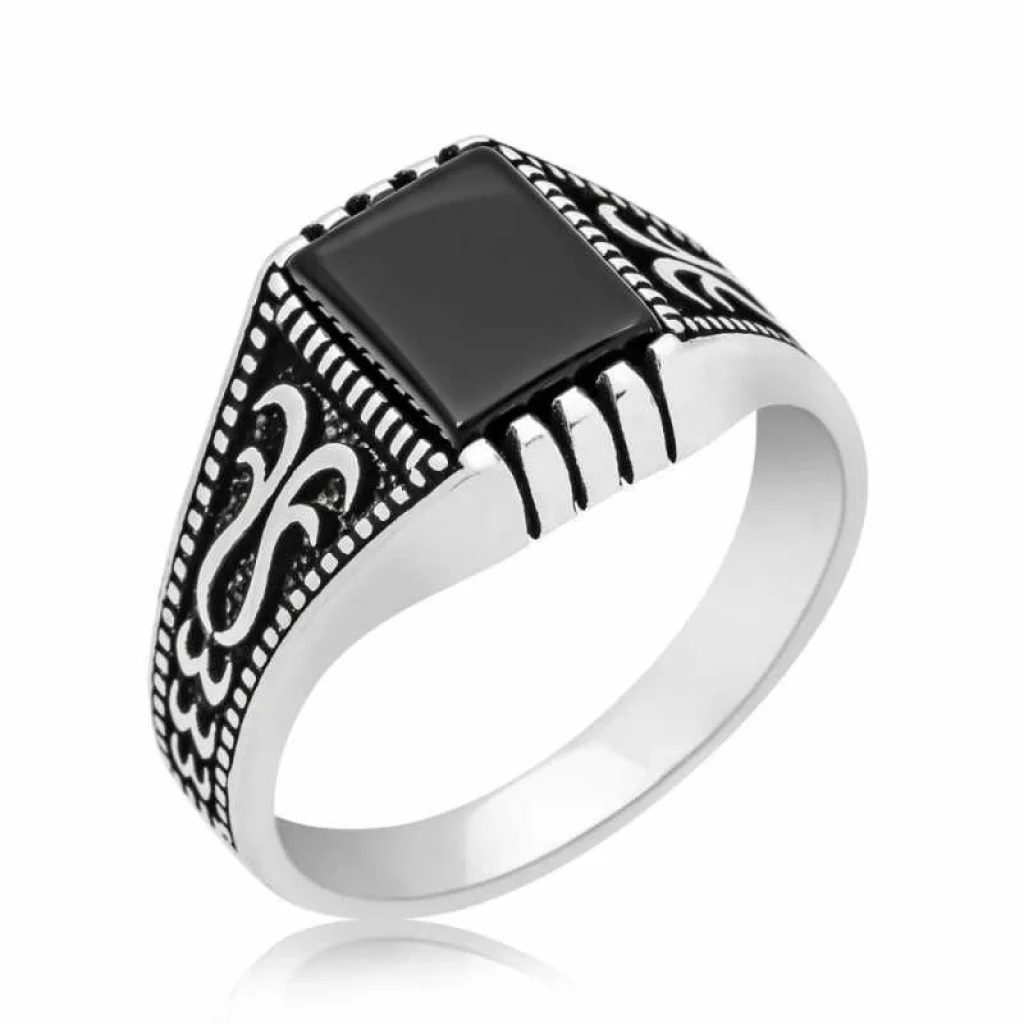 Gümüş Siyah Onix Taşlı Erkek Yüzük