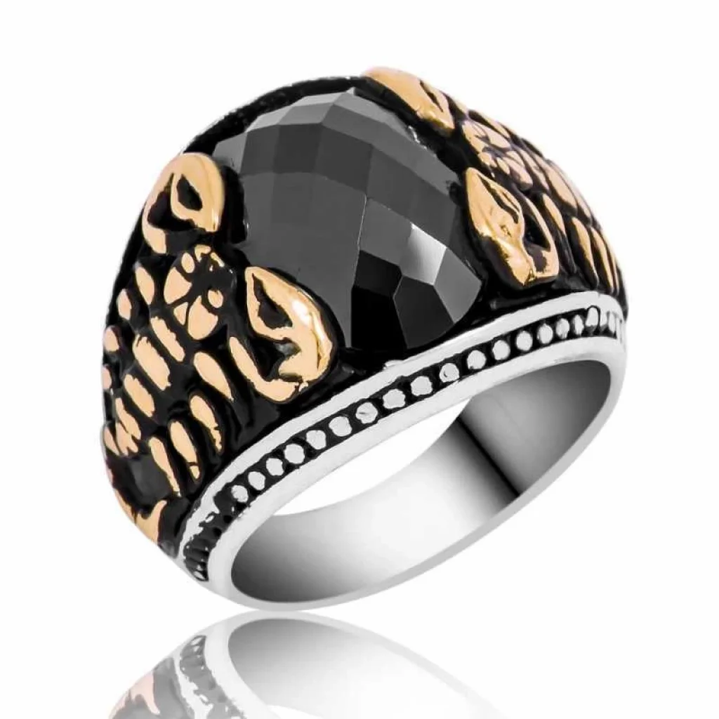 Gümüş Siyah Taşlı Akrep Erkek Yüzük