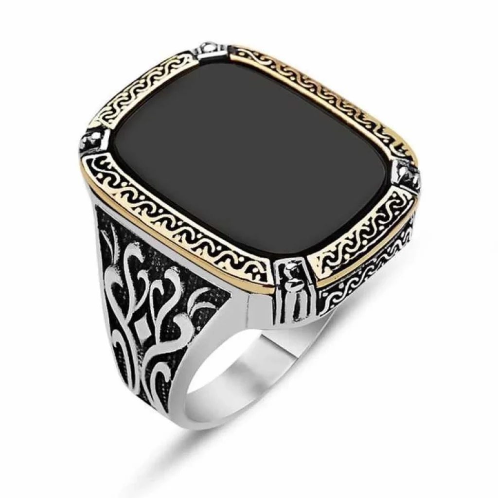 Erkekler kendilerine takı beğenirken klasik ve spor binlerce çeşit arasından tercihlerini yaparlar. En kaliteli ve şık gümüş yüzükler erkeklerin beğenisine sunulmaktadır. Bir kadını etkilemenin yolu neden hoş bir gümüş yüzük olmasın? Siz de sevdiklerinize gümüş gümüş siyah taşlı erkek yüzüğü hediye edebilir onları sevindirebilirsiniz. Siyah taşlı erkek yüzük 925 ayar gümüşten imal edilmiştir. Gümüş üzerine oksit kaplama yapılmıştır. Oksit kaplama yapılan gümüş erkek yüzük modelleri otantik bir görünüme kavuşur. Yüzük Yüzük üzerinde bulunan siyah taş onikstir. Tüm gümüş erkek yüzük modellerinde olduğu gibi gümüş siyah taşlı erkek yüzük modeli de tamamen el emeği ile üretilmiştir. Gümüş ve değerli taşlar nedeniyle belirtilen ortalama ürün ağırlığında ± %10 sapma olabilmektedir.