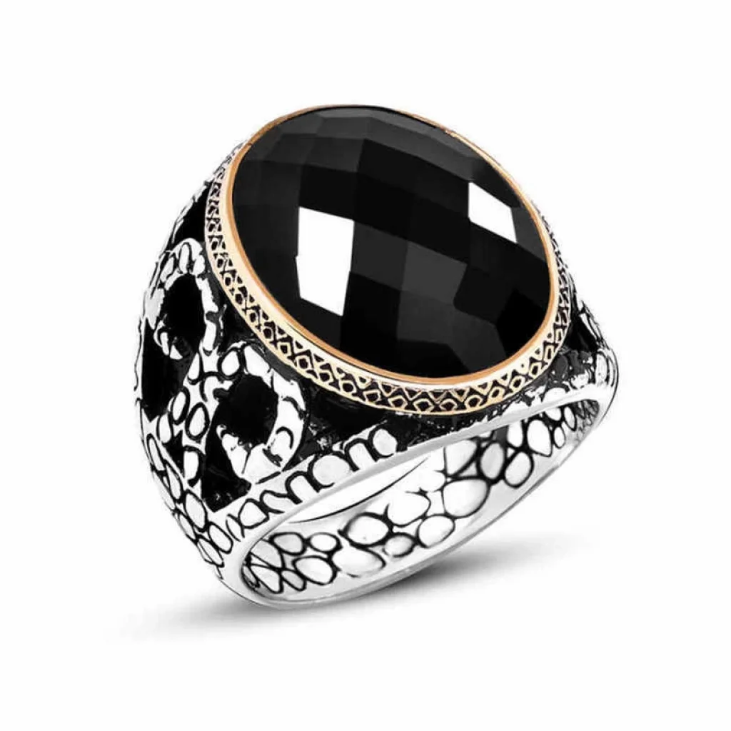 Gümüş üzerindeki oniks taşından oluşan bu yüzük modeli günün her anında kullanabileceğiniz şık bir aksesuardır. Bu yüzüğü; kendinize ya da sevdiklerinize doğum gününde, babalar gününde yada özel günlerde hediye edebilirsiniz. Siyah zirkon taşlı erkek yüzük modeli 925 ayar gümüşten imal edilmiştir. Gümüş üzerine oksit kaplama yapılmıştır. Oksit kaplama yapılan gümüş erkek yüzük modelleri parlaklığını uzun süre muhafaza eder. Tüm erkek yüzüklerde olduğu gibi gümüş siyah zirkon taşlı erkek yüzük modeli de el emeği ile üretilmiştir. Gümüş ve değerli taşlar nedeniyle belirtilen ortalama ürün ağırlığında ± %10 sapma olabilmektedir.
