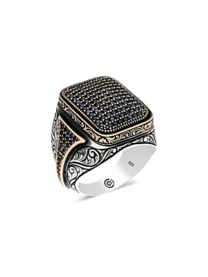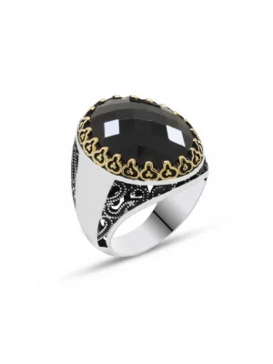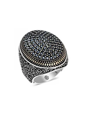 Gümüş Siyah Zirkon Taşlı Erkek Yüzük