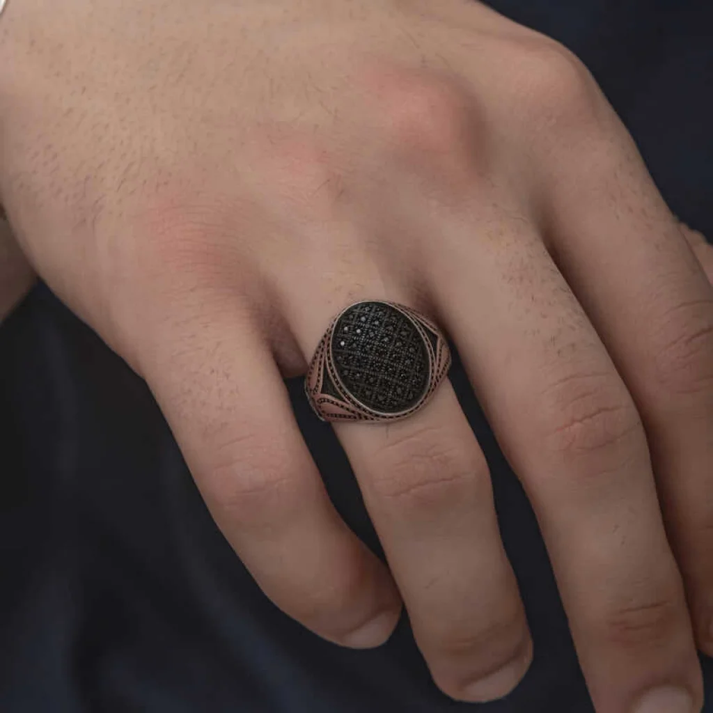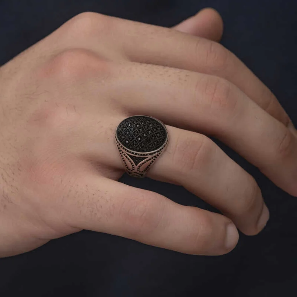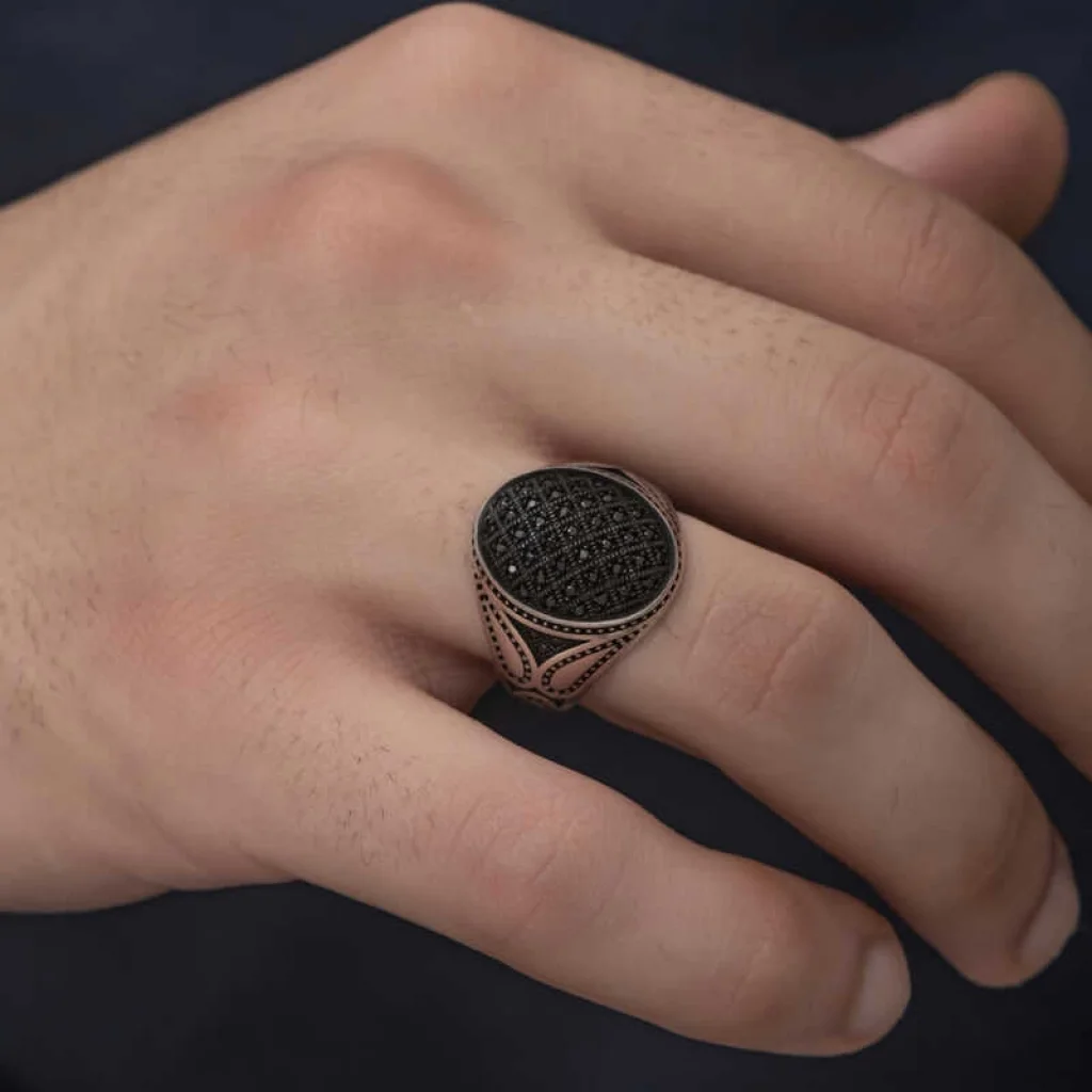Gümüş Siyah Zirkon Taşlı Erkek Yüzük