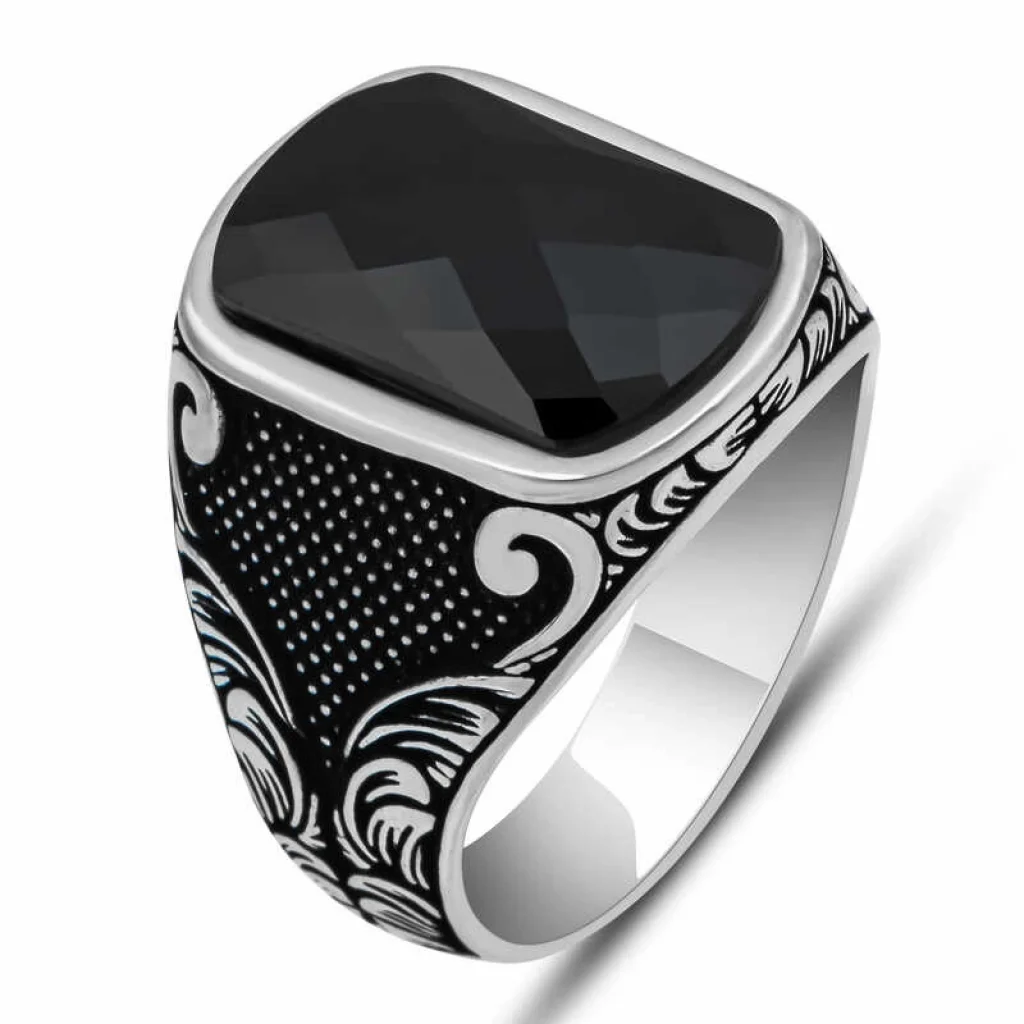 Gümüş üzerindeki zirkon taşından oluşan bu yüzük modeli günün her anında kullanabileceğiniz şık bir aksesuardır. Bu yüzüğü; kendinize ya da sevdiklerinize doğum gününde, babalar gününde yada özel günlerde hediye edebilirsiniz. Siyah zirkon taşlı erkek yüzük modeli 925 ayar gümüşten imal edilmiştir. Gümüş üzerine oksit kaplama yapılmıştır. Oksit kaplama yapılan gümüş erkek yüzük modelleri parlaklığını uzun süre muhafaza eder. Tüm erkek yüzüklerde olduğu gibi gümüş siyah zirkon taşlı kare erkek yüzük modeli de el emeği ile üretilmiştir. Gümüş ve değerli taşlar nedeniyle belirtilen ortalama ürün ağırlığında ± %10 sapma olabilmektedir.