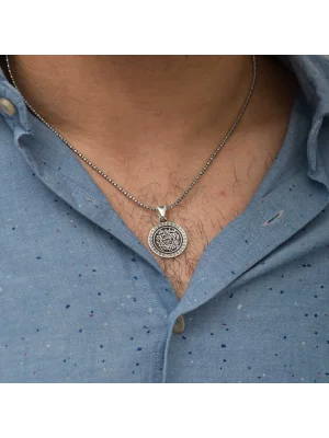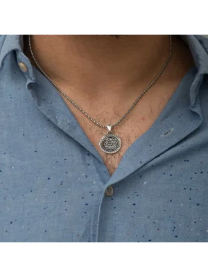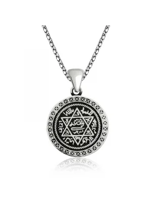 Davud yıldızı veya altı köşeli yıldız olarak da bilinen Süleyman mührünün hikmetlerini saymakla bitiremeyiz. Mührü yanında taşıyan kişiye büyü etki etmez. Kişi her türlü nazardan korunur. Taşıyan kişiye şeytan ve türevlerinin etki etmemesi gibi pek çok şifası vardır. Kolye 925 ayar gümüşten imal edilmiştir. Gümüş üzerine oksit kaplama yapılmıştır. Oksit kaplama yapılan gümüş kolyeler parlaklığını uzun süre muhafaza eder. Tüm gümüş kolyelerde olduğu gibi gümüş Süleyman mührü kolye de el emeği ile üretilmiştir. 55 cm zincir İle birlikte gönderilmektedir. Gümüş ve değerli taşlar nedeniyle belirtilen ortalama ürün ağırlığında ± %10 sapma olabilmektedir.
