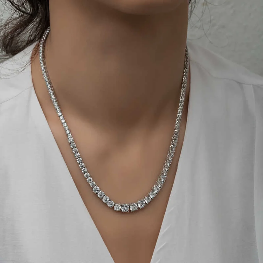 Gümüş Süzme Beyaz Taşlı Su Yolu Kadın Kolye