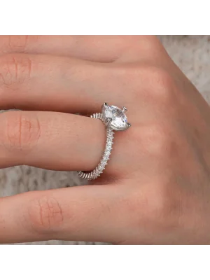 Gümüş zirkon taşlı tek taş bayan yüzük, sevdiklerinize alabileceğiniz ya da severek kullanabileceğiniz en değerli aksesuarlarınızdan biri olacaktır. Sevginizin en güzel simgesi olan bu tek taş bayan yüzük 925 ayar gümüşten imal edilmiştir. Gümüş üzerine rodyum kaplama yapılmıştır. Rodyum kaplama yapılan gümüş bayan yüzük modelleri parlaklığını uzun süre muhafaza eder ve oksitlenmesi gecikir. Yüzük üzerinde bulunan taşlar zirkondur. Tüm gümüş bayan yüzük modellerinde olduğu gibi gümüş tek taş bayan yüzük el emeği ile üretilmiştir. Gümüş ve değerli taşlar nedeniyle belirtilen ortalama ürün ağırlığında ± %10 sapma olabilmektedir.
