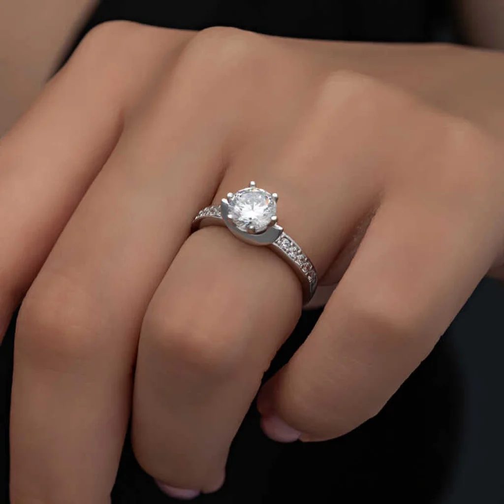 Bu özel tasarım tek taş yüzük 925 ayar gümüşten imal edilmiştir. Gümüş üzerine rodyum kaplama yapılmıştır. Rodyum kaplama yapılan kadın gümüş yüzük modelleri parlaklığını uzun süre muhafaza eder, oksitlenmesi gecikir. Yüzük üzerinde bulunan taşlar zirkondur. Sevdiğinize doğum günü, sevgililer günü ve özel günlerde verebileceğiniz mükemmel bir hediye seçeneğidir. Gümüş kadın yüzük modellerimizin tamamında olduğu gibi bu tek taş kadın yüzük de tamamen el emeği ile üretilmiştir. Gümüş ve değerli taşlar nedeniyle belirtilen ortalama ürün ağırlığında ± %10 sapma olabilmektedir.