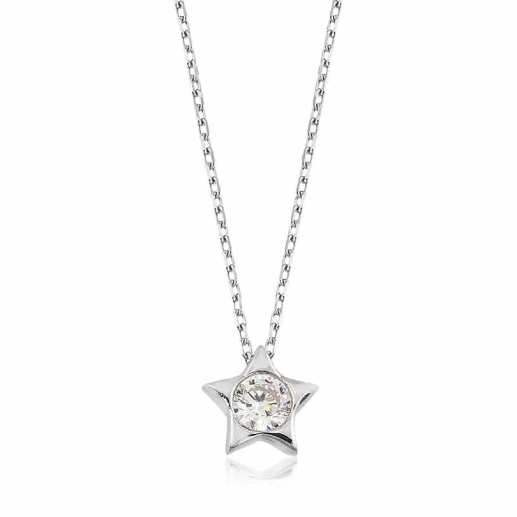 Gümüş Tek Taş Yıldız Bayan Kolye