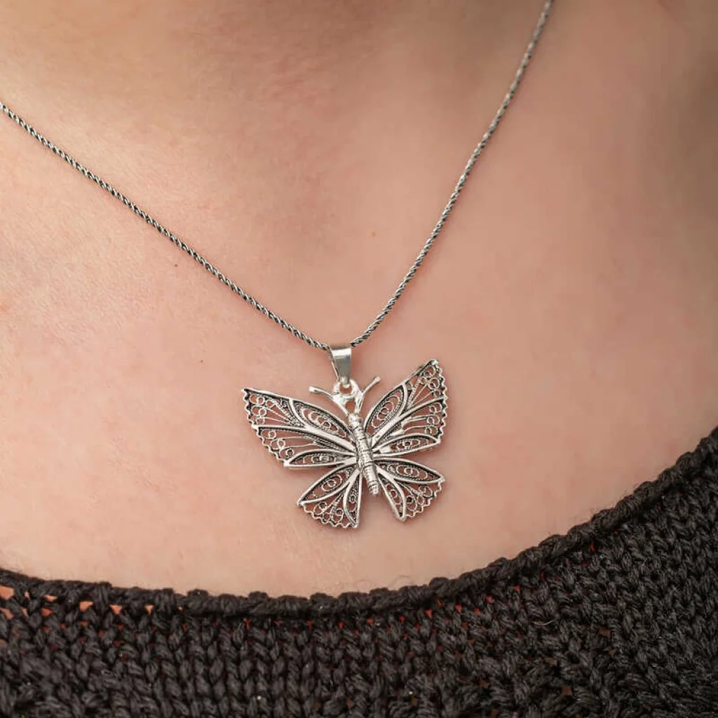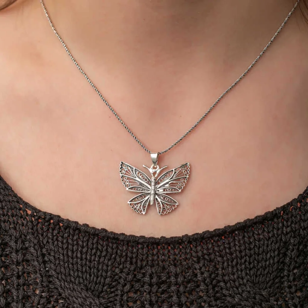 Gümüş Telkari Kelebek Kolye