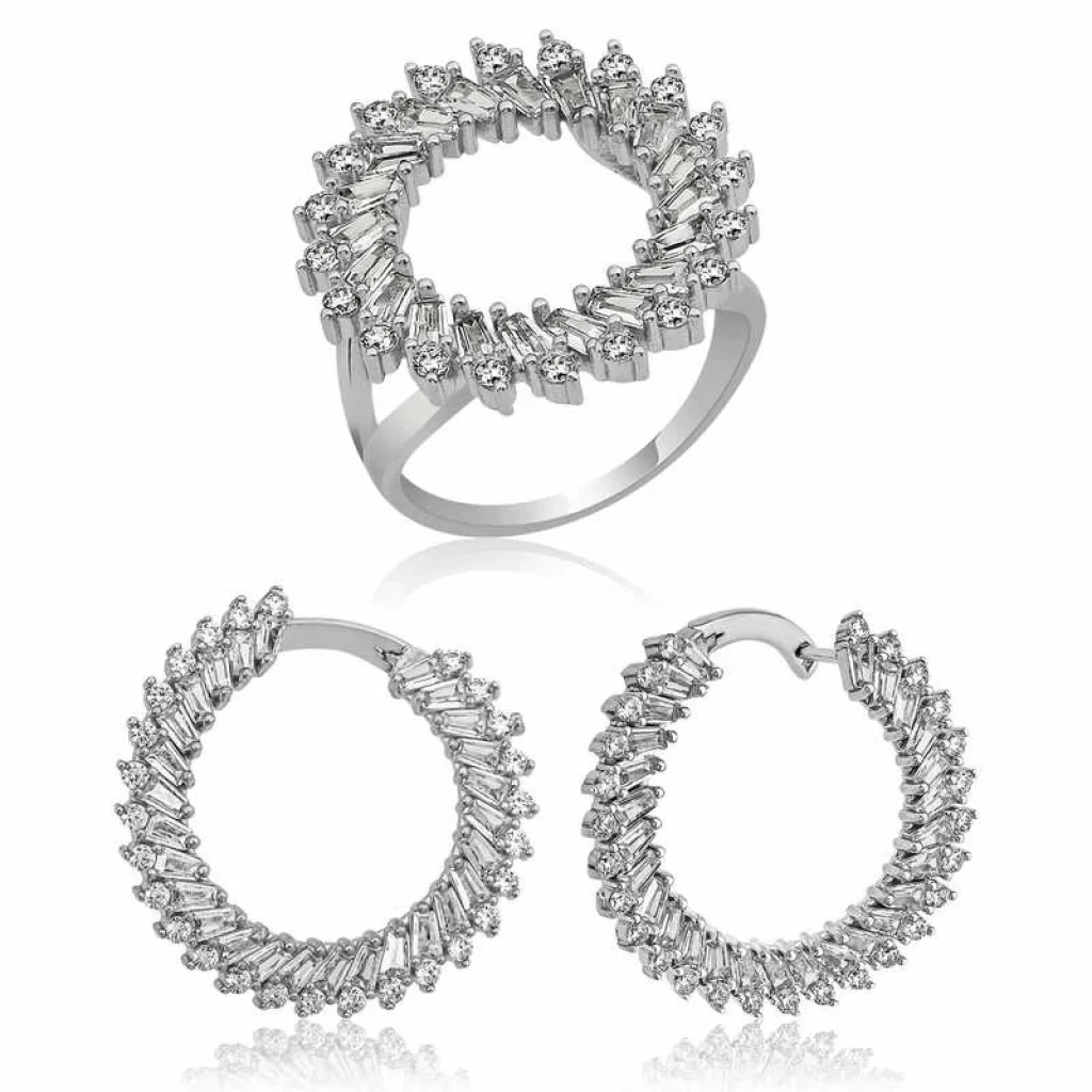 Gümüş Trapez Taşlı Bayan Set
